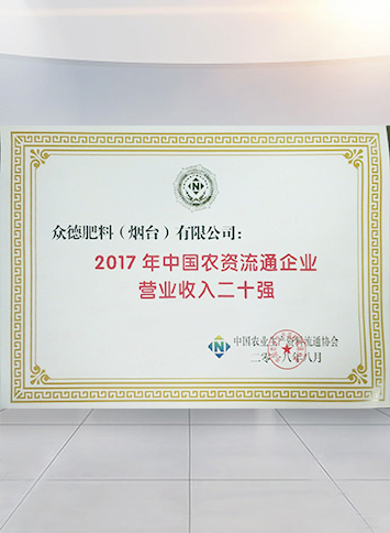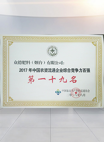 • 2017年中國農(nóng)資流通企業(yè)綜合競爭力百強(qiáng)第19名