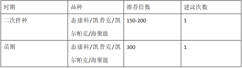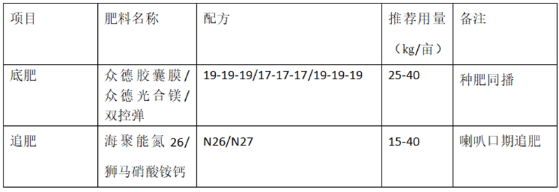 (2)推薦施肥套餐(根據(jù)用肥次數(shù)分類,結(jié)合目標產(chǎn)量、地域、品種、地力等適當(dāng)調(diào)整)