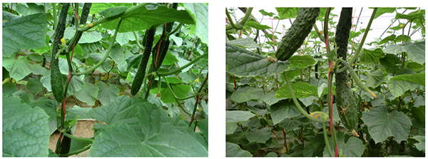 結(jié)果期:黃瓜生長前期吸收養(yǎng)分?jǐn)?shù)量較少,開花坐果前需肥量占總需肥量的15%左右。隨著生育期的推進(jìn),吸收養(yǎng)分?jǐn)?shù)量不斷增多,到結(jié)瓜期時達(dá)到吸收高峰,從結(jié)瓜至結(jié)瓜盛期,吸收養(yǎng)分?jǐn)?shù)量占全部需肥量的85%左右,其中50%~60%是在收獲盛期。根據(jù)這一特點(diǎn),坐瓜后要結(jié)合澆水適時適量的追肥補(bǔ)肥,滿足其生長需要,促進(jìn)產(chǎn)量和質(zhì)量。