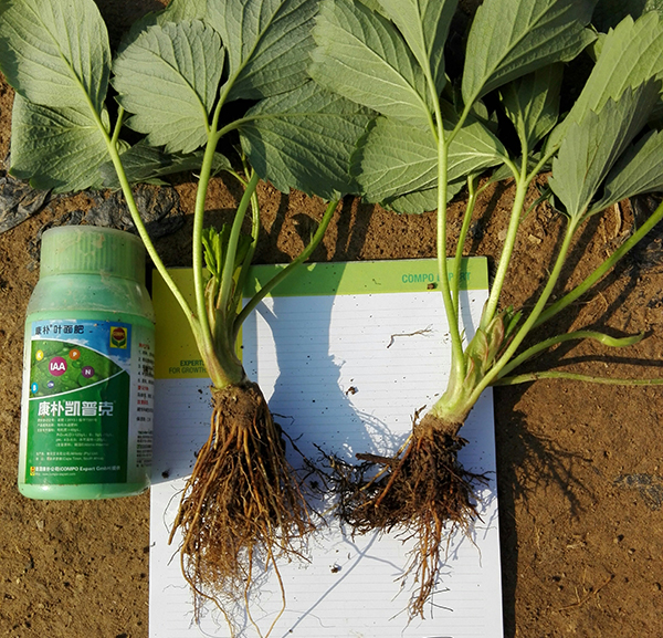 棲霞市草莓種植戶于國立,種植草莓十多年,是草莓種植高手,對肥料的使用很有經(jīng)驗也十分挑剔,是遠(yuǎn)近有名的土專家。他從來不會輕易選擇化肥,對市場上的各種品牌的化肥,他都會從產(chǎn)品的包裝,執(zhí)行標(biāo)準(zhǔn),生產(chǎn)批號,產(chǎn)品的成分進(jìn)行觀察和比較。對產(chǎn)品的生產(chǎn)工藝比如高塔造粒,緩控釋等技術(shù)也十分了解,他對選擇的不同的品牌的化肥都進(jìn)行實驗對比,看看那個品牌的肥料效果好。干事認(rèn)真的于大哥每天都呆在草莓地里觀察草莓生長情況。通過觀察。他將用了不同品種化肥的草莓不同時期的表現(xiàn)都進(jìn)行記錄和比較,經(jīng)過一個生長周期的觀察,他發(fā)現(xiàn)施用眾德產(chǎn)品的草莓,移栽后緩苗期短,比用其他品牌的草莓緩苗期短1-2天,并且提苗快。葉色濃綠,葉片直立,葉面寬,莖干粗壯,花芽分化早飽滿,后期開花早,花瓣大?;ɡ亠枬M,花粉足,在同樣的生長環(huán)境條件,通過蜜蜂授粉后,坐果率能提高6%.果實發(fā)育整齊度高,果個差異小。比較勻整。發(fā)育快。專色也快。比施用其他化肥的提早2-5天上市。單果重明顯提高。果面表光亮,絢麗,口感好,甜度搞得達(dá)到18°。折合畝產(chǎn)高10%左右。通過這些細(xì)致的對比,于大哥義無反顧的選擇了眾德產(chǎn)品,并且至今已連續(xù)施用三年眾德公司的草莓套餐,連續(xù)獲得高產(chǎn),腰包也鼓起來了,挑剔的于大哥被眾德產(chǎn)品的質(zhì)量徹底征服。
